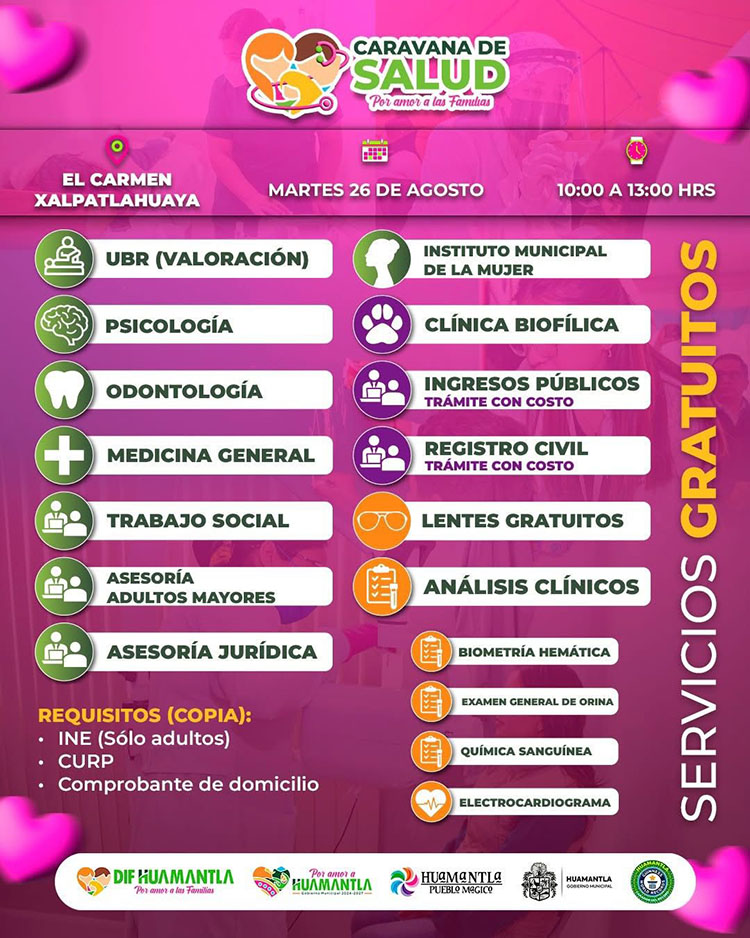 La caravana de salud llegará a El Carmen Xalpatlahuaya en Huamantla
