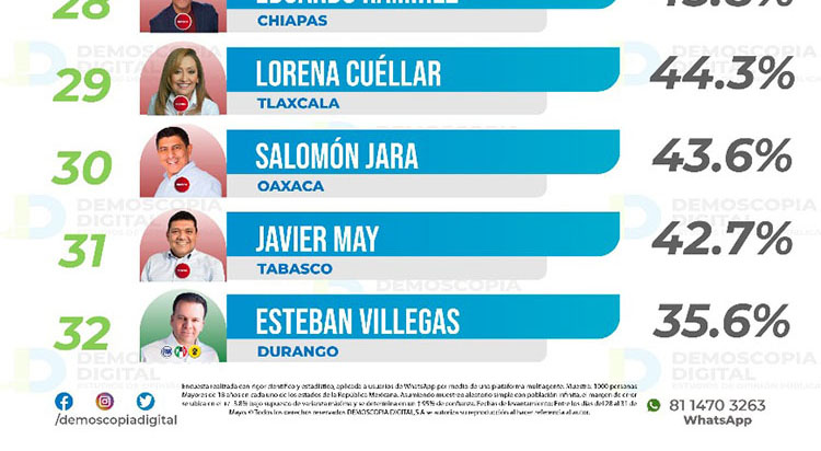 Demoscopia coloca a Cuéllar en lugar 29 de ranking de gobernadores; CE Research en el 27