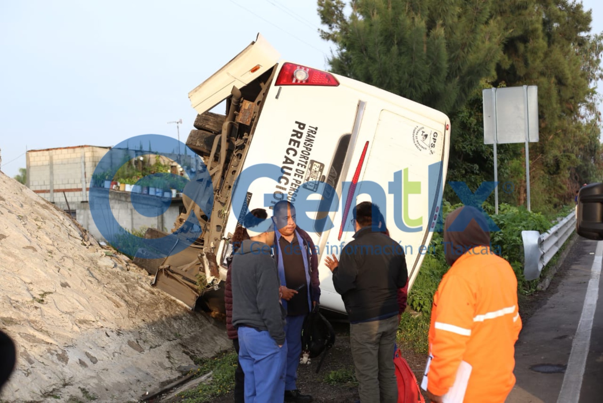Volcadura de transporte de personal en Panotla deja cinco lesionados