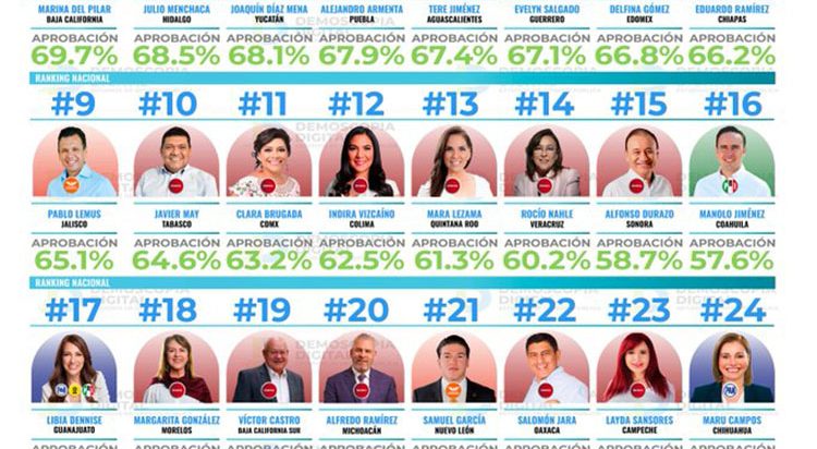 Gobernadora Cuéllar Cisneros baja en el ranking nacional de aprobación