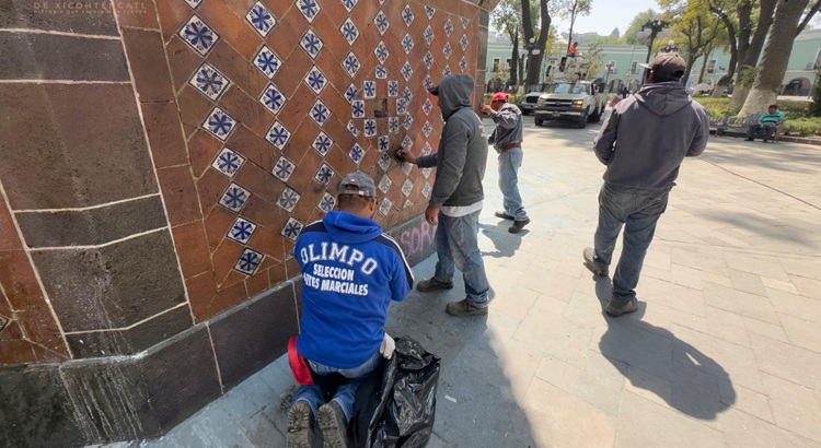 Trabaja personal del Ayuntamiento de Tlaxcala en la rehabilitación del centro histórico