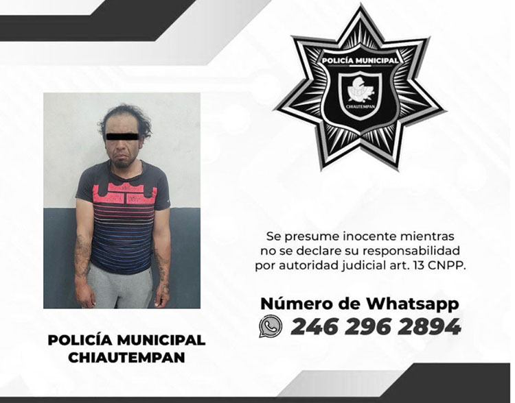 Asegura Policía de Chiautempan a sujeto por intento de robo de motocicleta