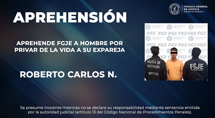 Aprehende FGJE a Roberto Carlos N. Por privar de la vida a su expareja