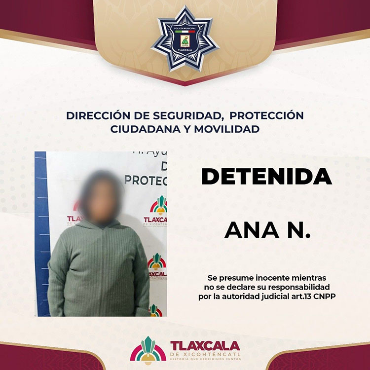 Policía municipal de Tlaxcala detuvo a mujer por alteración al orden público en San Gabriel Cuauhtla