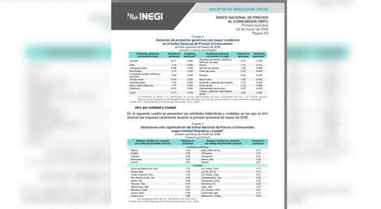 Tlaxcala entre las entidades con mayor presión inflacionaria en el país